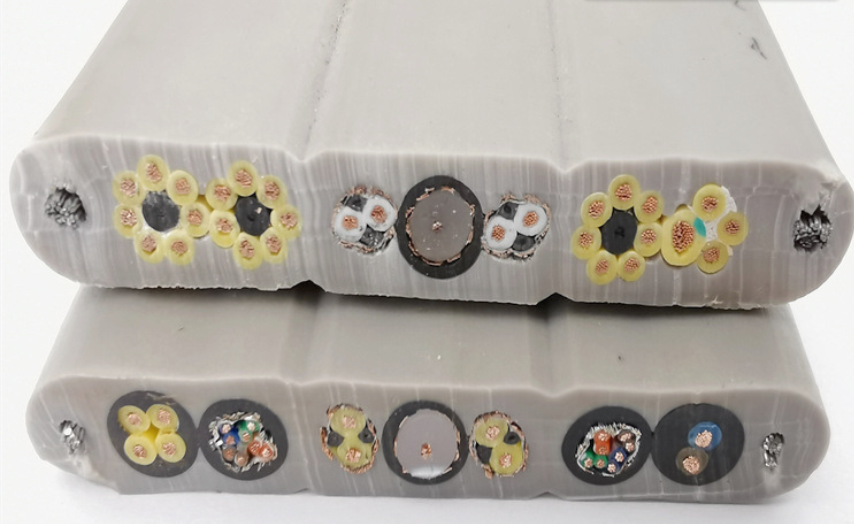 扁電纜-電源+網(wǎng)線+同軸隨行適用于有軌行車、臺(tái)車、傳輸機(jī)械、起重天車和各種探傷設(shè)備,也可作自承式井道或傾斜式貨架的安裝,動(dòng)力傳輸線及控制、照明、通訊線路的使用。聚氨酯扁平電纜具有抗氣候變化的特征,適用于建筑工地及船廠的起重設(shè)備,可在惡劣的環(huán)境條件下保證設(shè)備的正常工作。