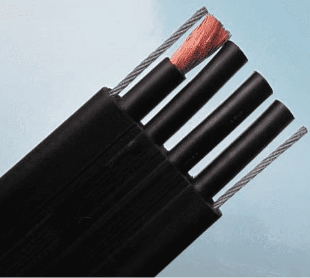 應考慮在電纜中增加承力元件,承力元件一般為鍍鋅軟鋼絲繩或纖維繩如芳紗綸等