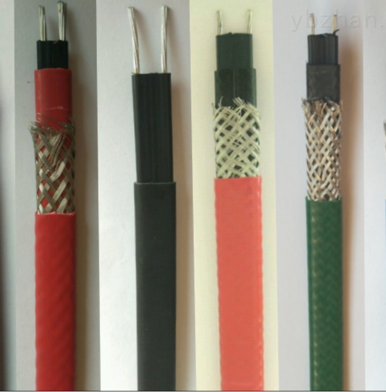 電源母線為二根平行絕緣銅線。在絕緣層中間纏繞電熱絲,并將該電熱絲每隔一定距離(即“發(fā)熱節(jié)長”)與母線連接,形成連續(xù)并聯(lián)電阻。母線通電后,各并聯(lián)電阻發(fā)熱,因而形成一條連續(xù)的加熱帶。